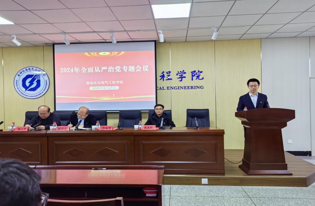 9月27日,我院在秋实楼B310会议室召开2024年全面从严治党专题会议,会议由党委书记佟振华主持。学院院长喻大华,副书记、副院长张连科出席会议。学校党委委员、副校长屈忠义列席会议。