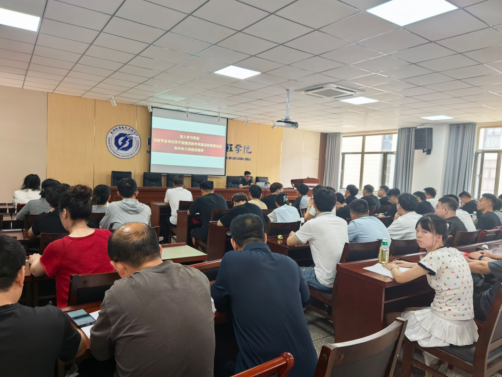 为深入贯彻中央八项规定精神学习教育,进一步加强党员干部的作风建设,按照校党委和学院党委工作部署,6月12日太阳集团tyc138党委副书记、副院长张连科为学院教工第二党支部、学生第五党务党支部、建筑电气与智能化专业和学团办公室全体党员讲授了题为“深入学习贯彻习近平总书记关于加强党的作风建设的重要论述和中央八项规定精神”的党课。