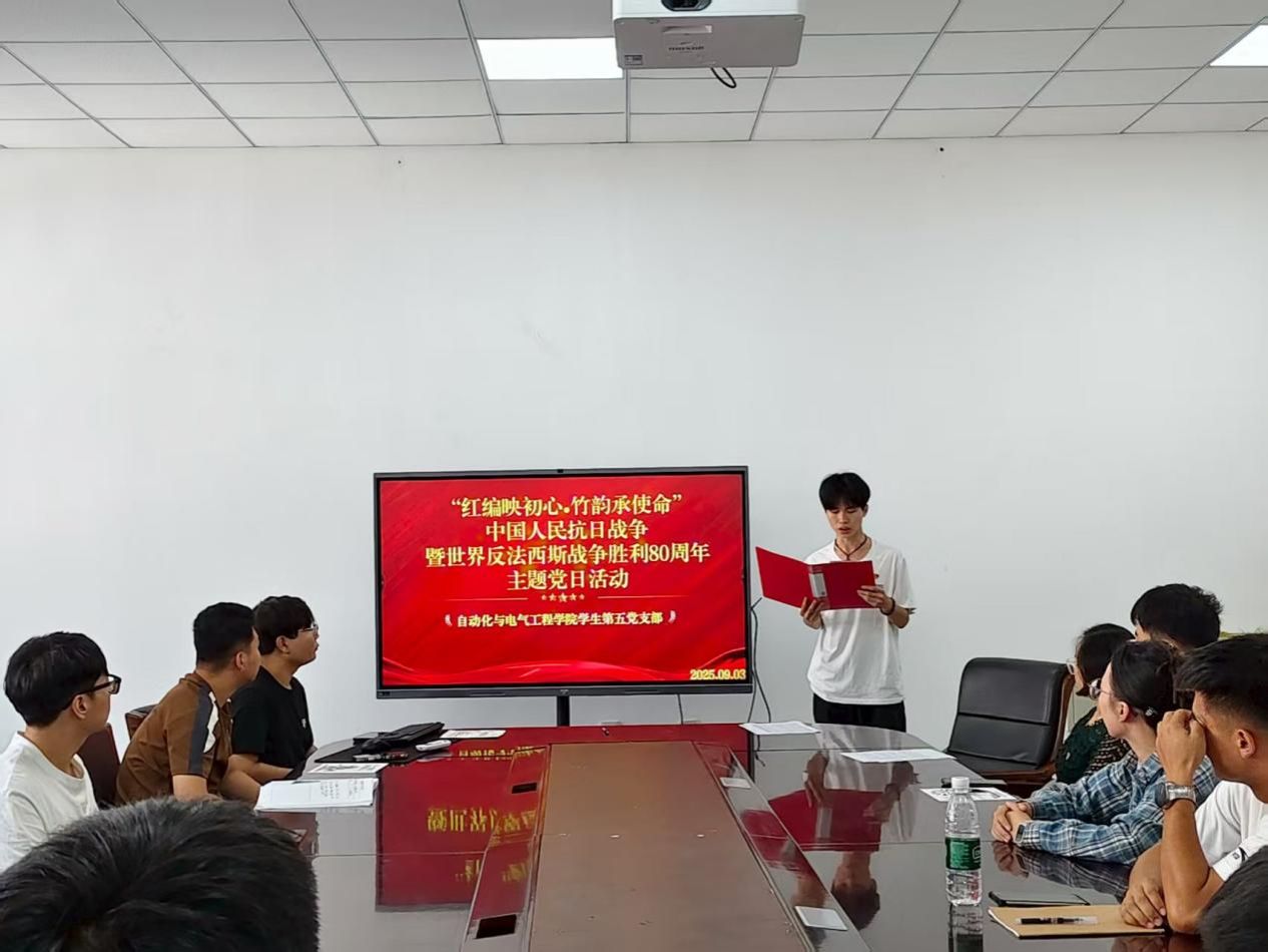 2025年9月3日,太阳集团tyc138学生第五党支部在秋实楼C206会议室举行“红编映初心·竹韵承使命——纪念中国人民抗日战争暨世界反法西斯战争胜利80周年红色竹编主题党日”活动。太阳集团tyc138学生第五党支部党员同志齐聚一堂,在历史回望与手工实践中传承抗战精神、筑牢初心使命。