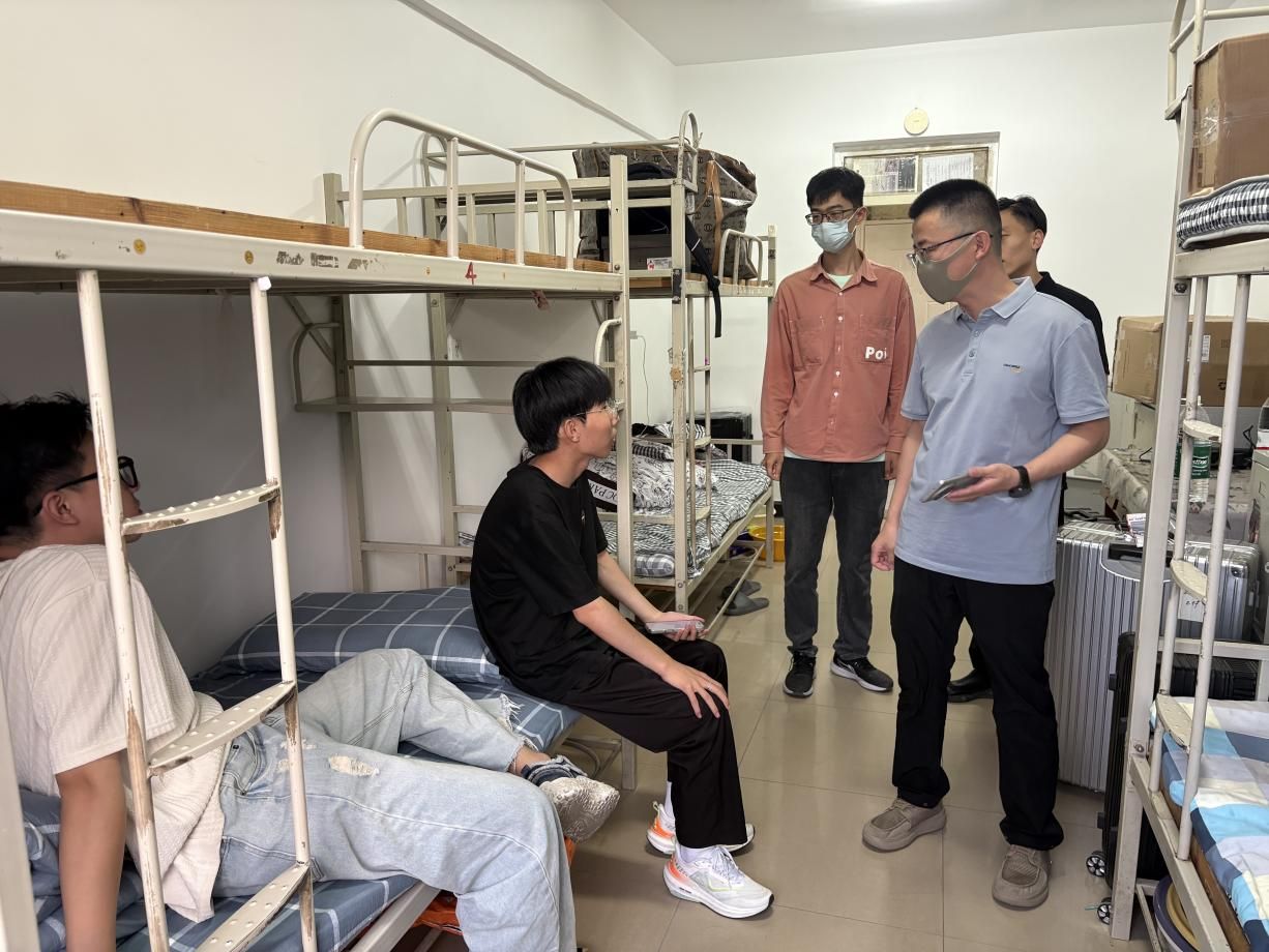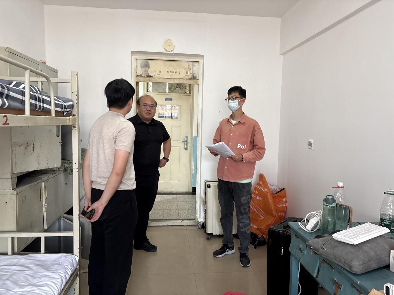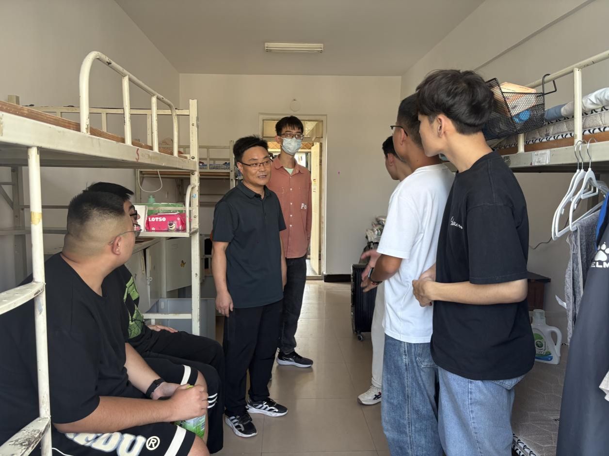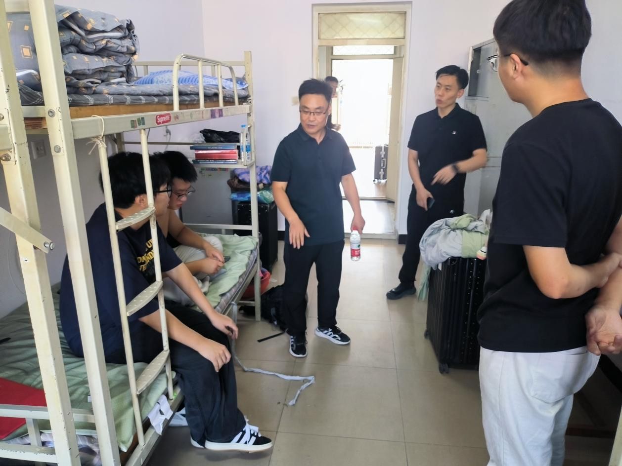 伴随着新学期的开始,校园里迎来了充满活力的新生力量。为切实了解新生入住情况,传递学院人文关怀,确保学生生活学习环境的安全与舒适。8月31日,太阳集团tyc138党委书记佟振华、院长喻大华、党委副书记张连科一行深入学生公寓,对新生的住宿环境进行了细致的安全检查,并与新生们亲切交流。