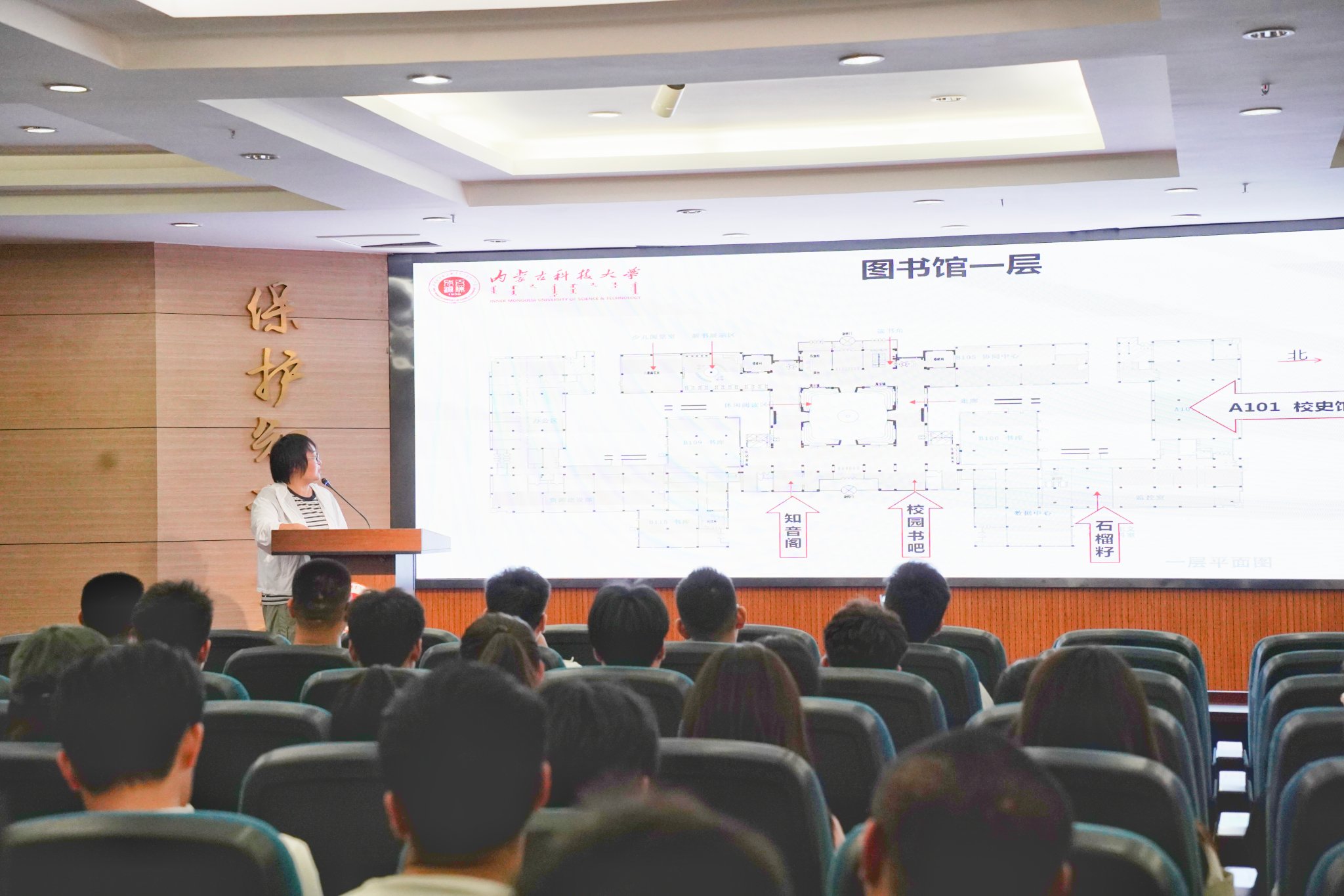 在多媒体报告厅内,座无虚席,新生们聚精会神地聆听着这场“图书馆的第一课”。讲解员详细讲解了图书馆各功能区的布局与使用功能。从静谧肃穆的图书借阅区、到专注高效的自习研读区,从校企合作的悦书吧、到独具品味风格的知音阁。讲解员逐一介绍了每个区域的特点、开放时间、预约方式及使用规范,同时,还详细介绍了借阅权限、借期、逾期处理办法以及图书预约等内容。