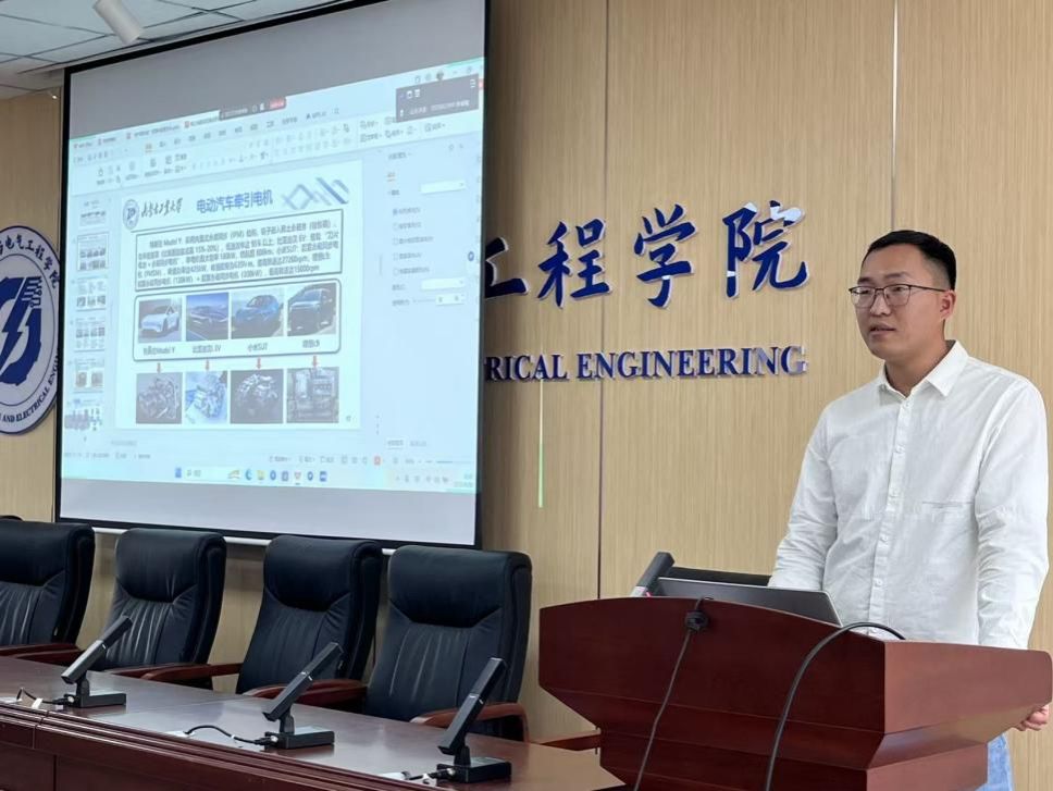乙加伟老师以“稀土永磁电机演进历程、理论技术及前沿应用探究”为题,带领师生回顾了从电磁理论建立到稀土永磁电机蓬勃发展的技术演进史。他详细讲解了不同稀土永磁材料的特性与选型依据,并展示了该类电机在新能源汽车、工业驱动、航空航天等领域的广泛应用,展望了其未来技术发展趋势。