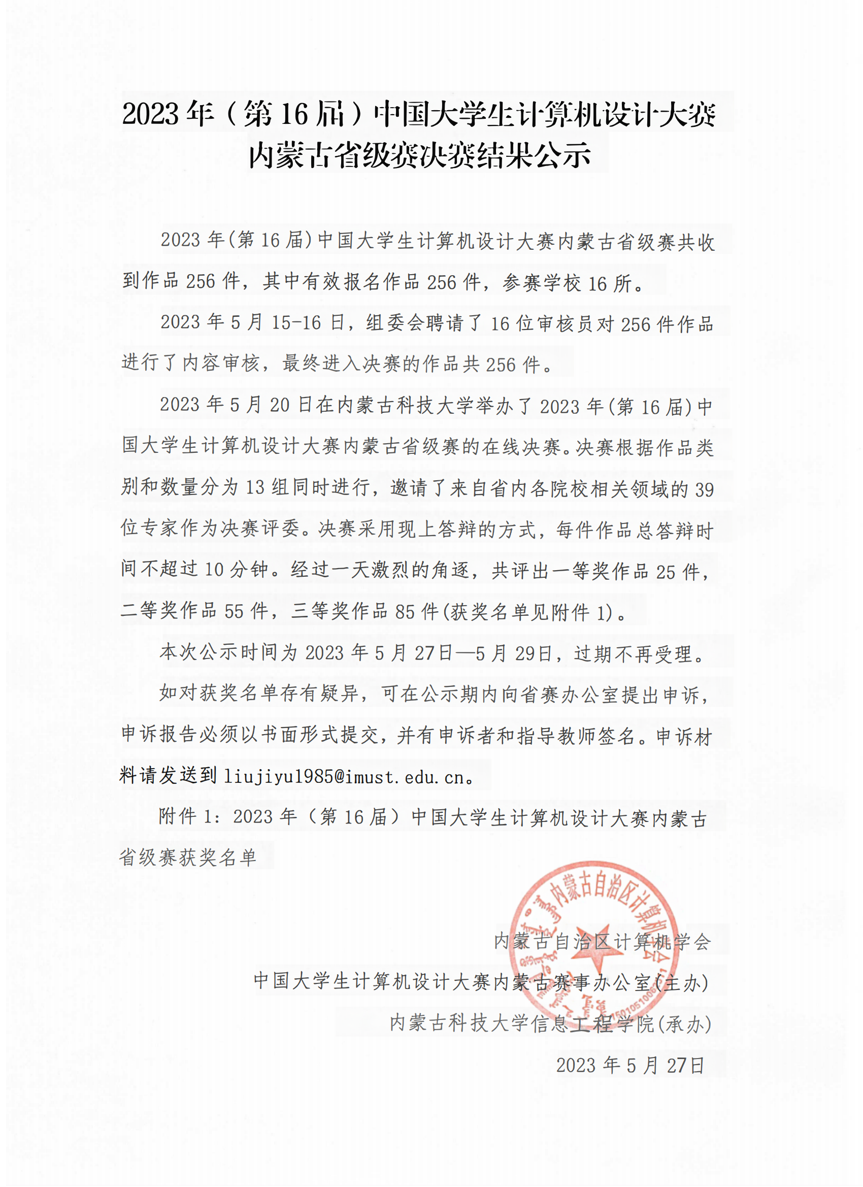 【通知公告】2023 年(第 16届)中国大学生计算机设计大赛 内蒙古省级赛决赛通知