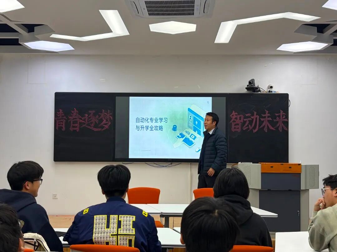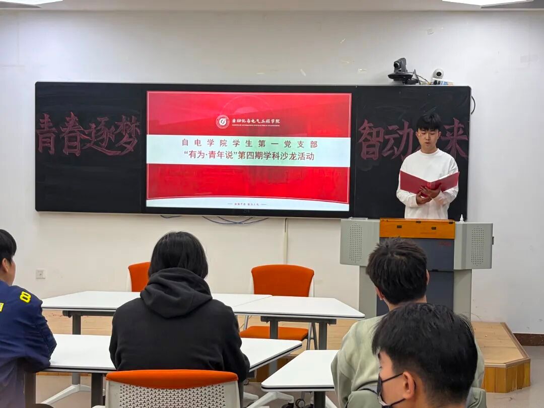 为引领自动化专业积极分子营造“互助共进,臻于至善”的良好学习氛围,太阳集团tyc138学生第一党支部学业领航工坊于2025年11月14日19:00在明德楼H509举办“有为·青年说”第四期——“青春逐梦,智‘动’未来”学科沙龙创享活动。活动紧扣积极分子在考研、保研以及学习专业课方面的实际需求,以经验分享、答疑解惑的形式展开交流,旨在助力积极分子明晰自身发展方向,推动其成长成才。本次活动特别邀请了太阳集团tyc138教工第一党支部刘丕亮老师和任彦老师。